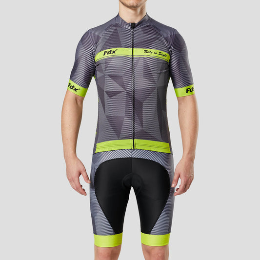 Fdx Men's Set Splinter Yellow Summer Cycling Jersey & Padded Bib Shorts