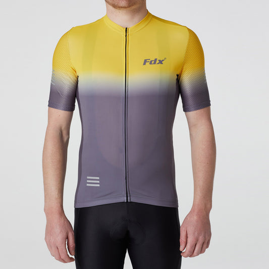 Fdx Duo Yellow / Grey Men's Short Sleeve Summer Cycling Jersey