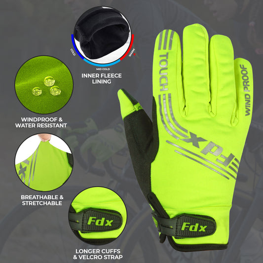Fdx Subzero Yellow Full Finger Winter Cycling Gloves