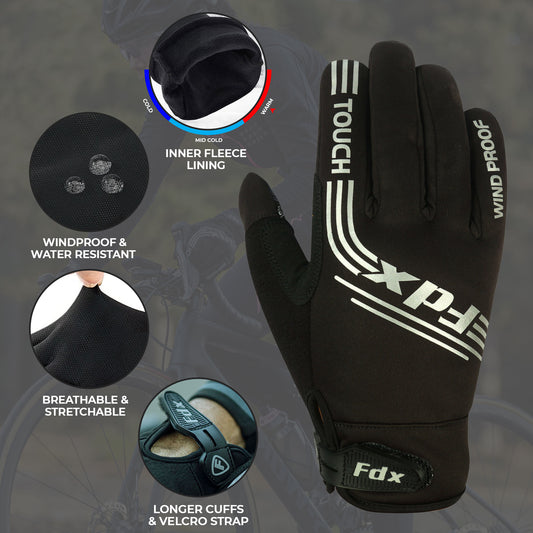 Fdx Subzero Black Full Finger Winter Cycling Gloves