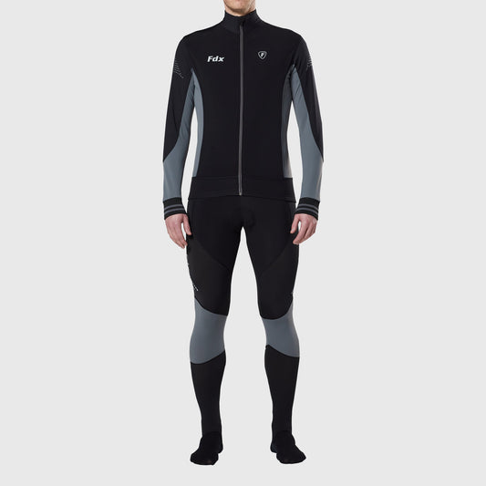 Fdx Men's Set Arch Thermal Roubaix Long Sleeve Cycling Jersey & Cargo Bib Tights - Black