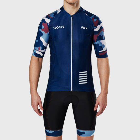 Fdx Men's Set Camouflage Blue Short Sleeve Jersey & Bib Shorts