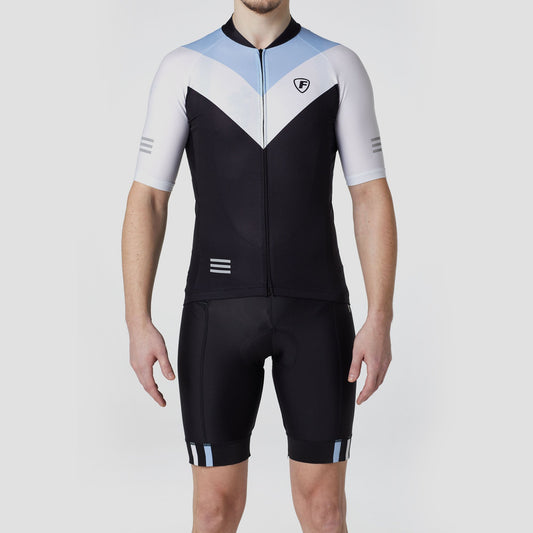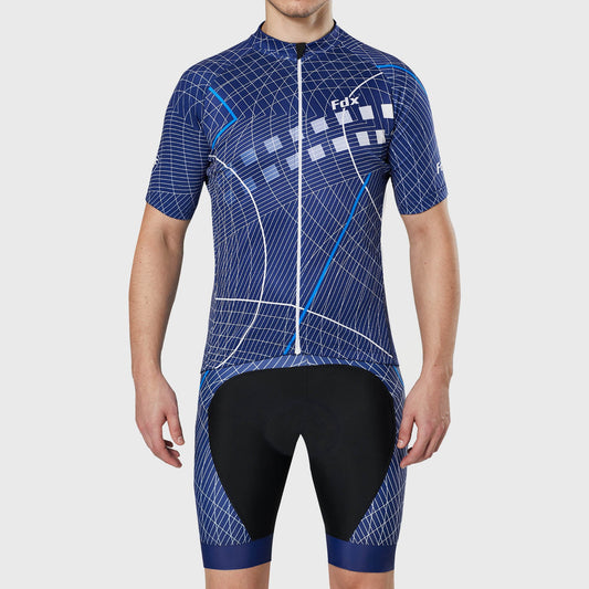 Fdx Men's Set Splinter Blue Short Sleeve Summer Cycling Jersey & Bib Shorts