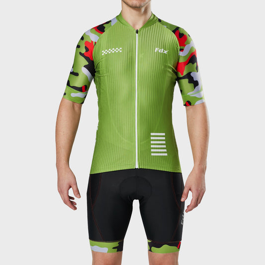 Fdx Men's Set Camouflage Green Short Sleeve Jersey & Bib Shorts
