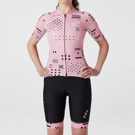 Fdx Women's Set Signature Pink Summer Cycling Jersey & Bib Shorts