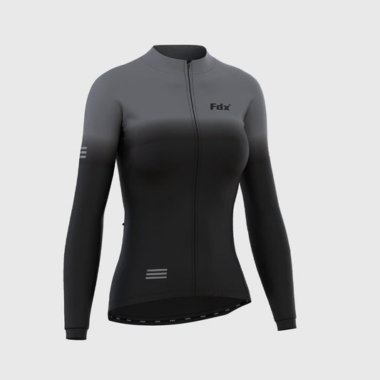 Fdx Women's Set Duo Thermal Long Sleeve Cycling Jersey & Bib Tights - Black / Grey