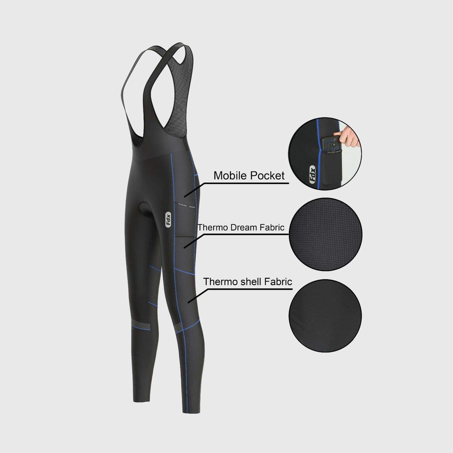 Fdx All Day Blue Women's Thermal Padded Winter Cargo Bib Tights